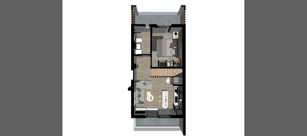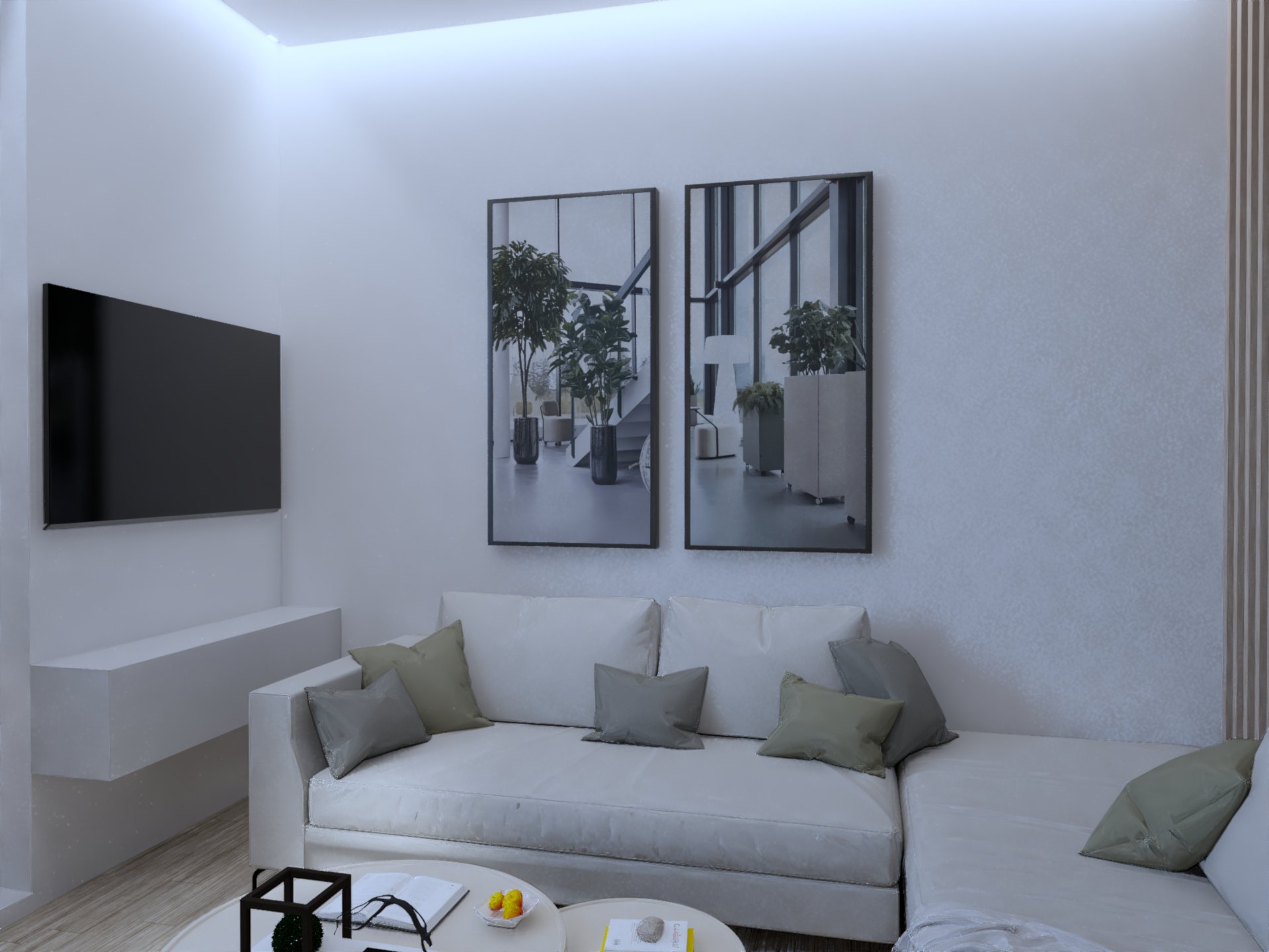 A 2 level maisonette under construction in Parlalia Portaria in Halkidiki. It is 66,98 sq.m. and develops on the 1st floor and 2nd floor. It is located in a modern complex called Kyveli. On the 1st level is the kitchen-living room and the bathroom, on the 2nd level, the attic, the room. The modern design, the materials to be used, plasterboards and hidden lighting create a beautiful atmosphere.