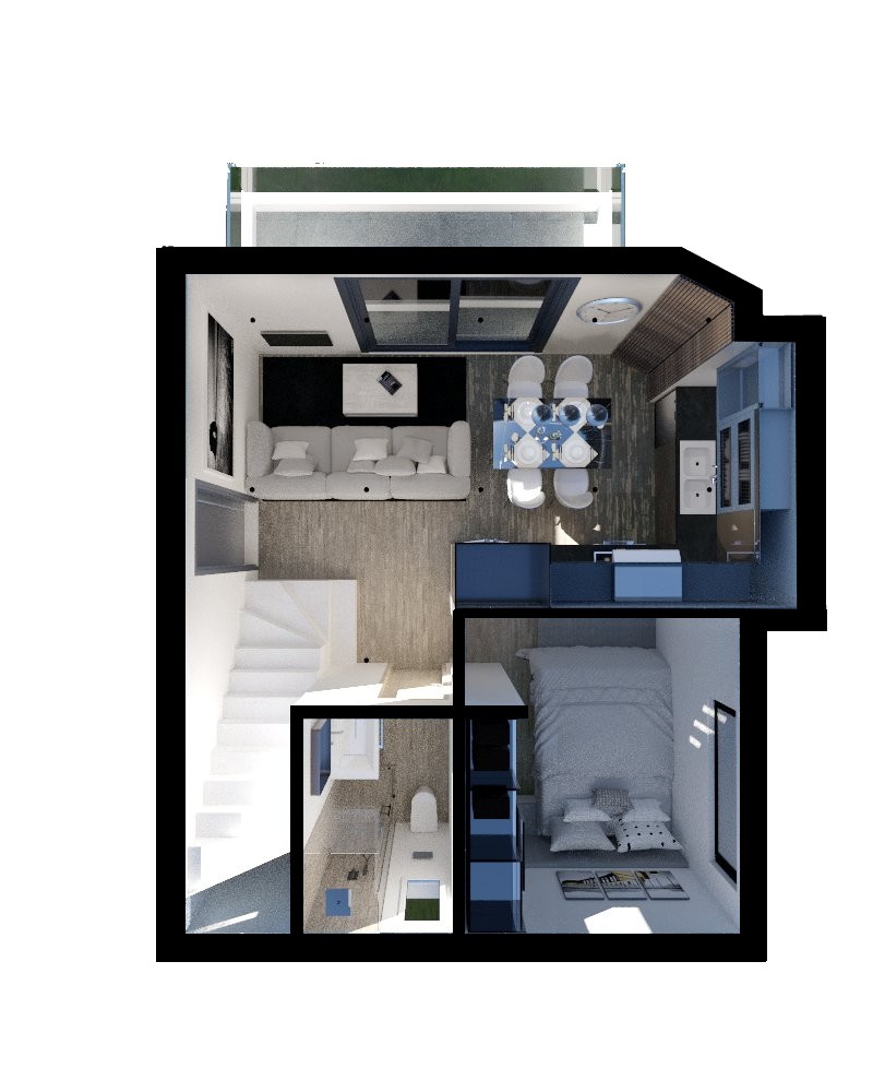 Има 62 м2. и развија се на 1. и 2. спрату. Налази се у модерном комплексу под називом Кивели. Има 2 комфорне спаваће собе, дневни боравак, кухињу, купатило. На 1. нивоу је кухиња-дневни боравак и купатило, док је на 2. спрату спаваћа соба.